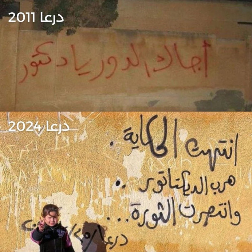İç savaş, Dera’da bir grup öğrencinin 15 Mart 2011’de okul duvarına “Ey doktor (Beşar Esad) şimdi sıra sana geldi” yazmasıyla başladı.
