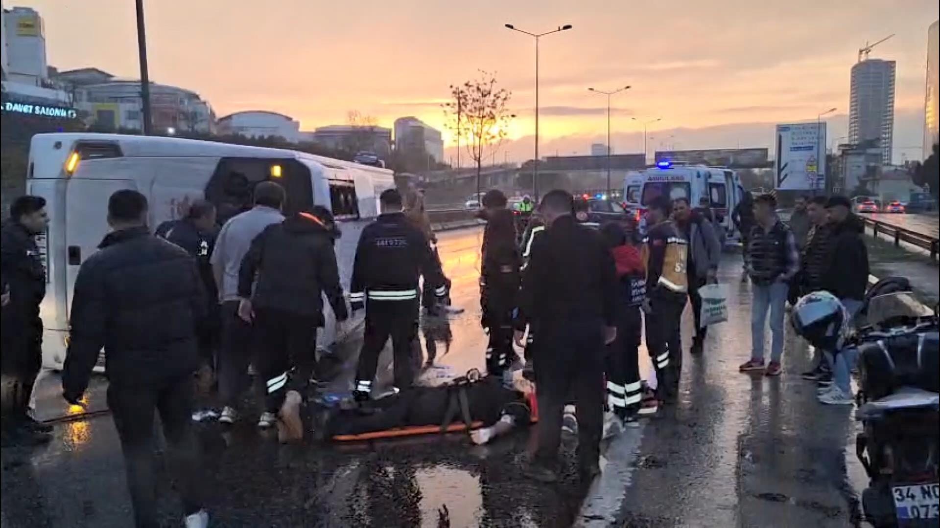 Havalimanı vardiya değişimi sabah trafiğine karışırken Maltepe D-100 Karayolu’nda yağmurla birlikte iyice kayganlaşan zeminde kaza yaşandı. Havalimanı çalışanlarını taşıyan servis minibüsü kontrolden çıkarak devrildi. Araç adeta yan yattıktan sonra birkaç metre sürüklendi.