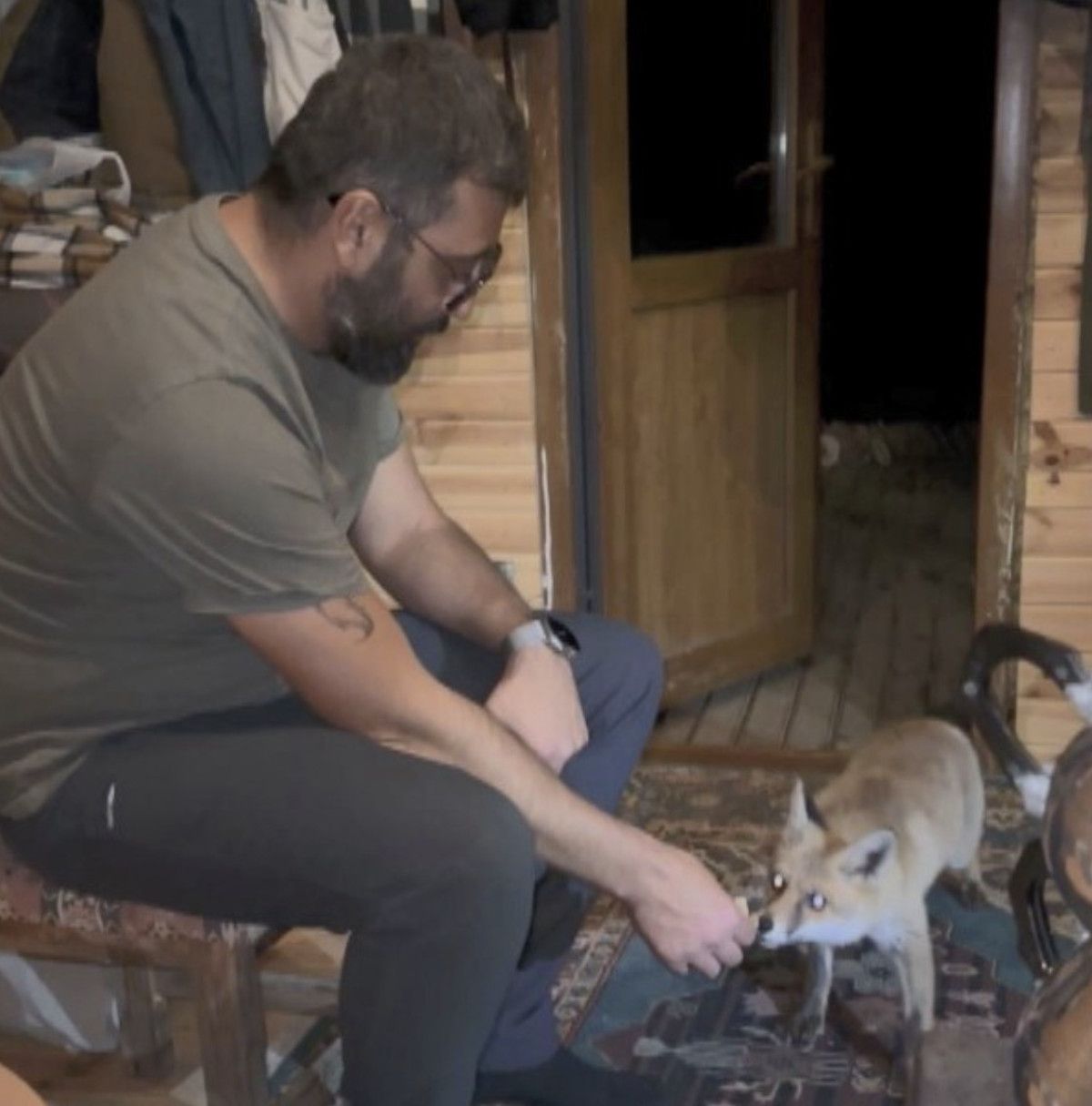 Karslıoğlu, ‘Tilko’ adını verdiği ve elleriyle beslediği tilkinin yemek yediği ve barakada dolaştığı anları kayıt altına aldı.
