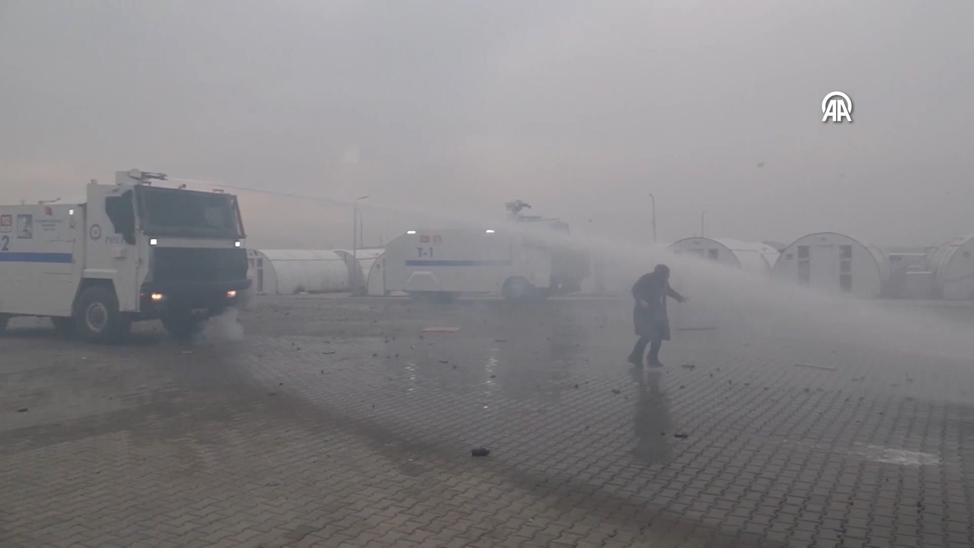 Eylemcilere TOMA ile müdahale edildi. Polisler, senaryodaki gruptan bazı kişilerin gözaltına alınmasını da canlandırdı.